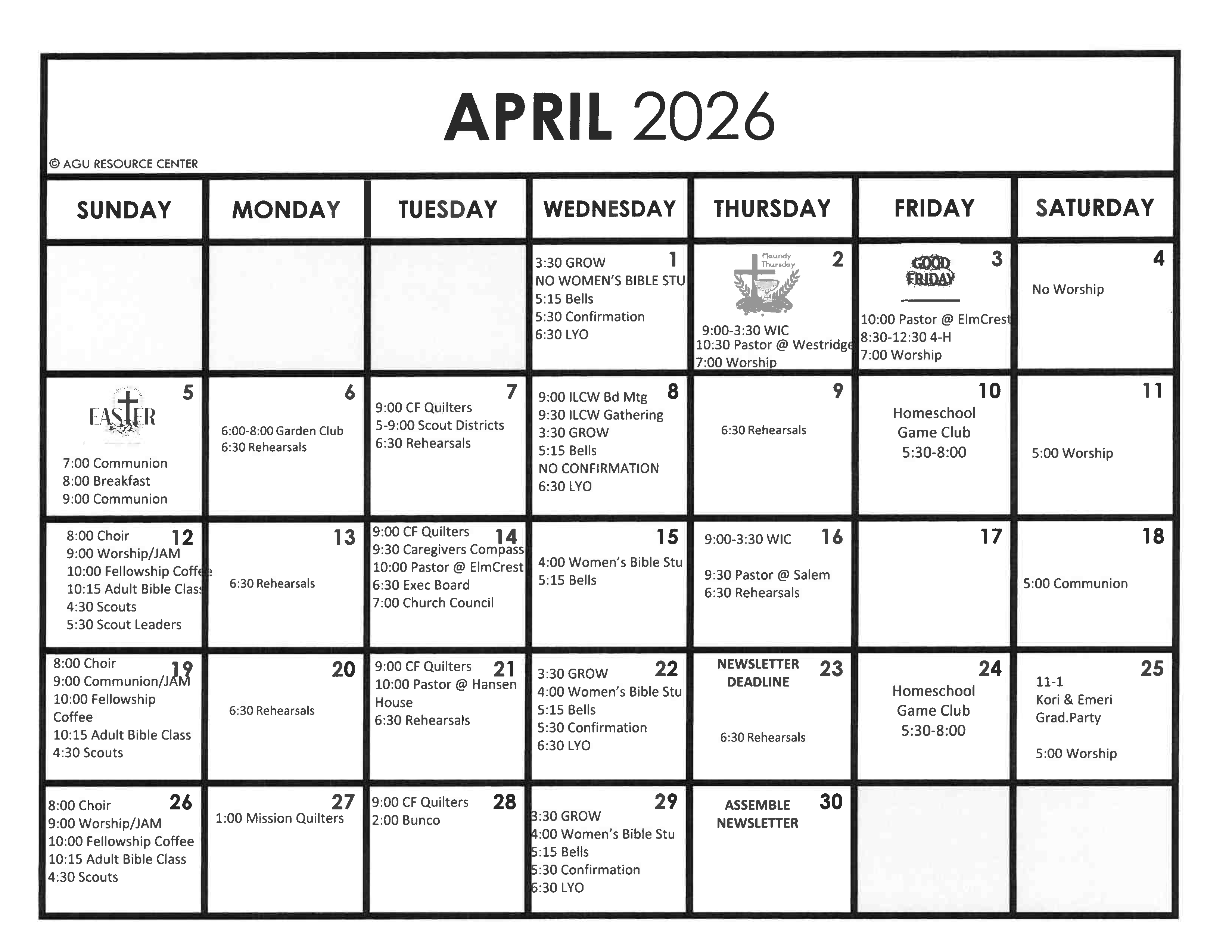April 2026 Calendar